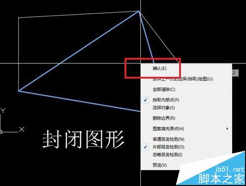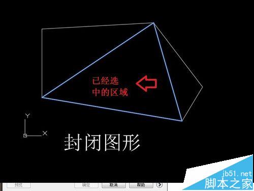 3、我們選取要填充的邊界,這里有兩種選擇方法,一個是選擇內部點,一個是選擇邊界,都能滿足要求,選擇內部點,只需要選擇區域的一個點即可,而選擇邊界,要把整個邊界全部選中;如下圖所示