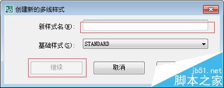 3、彈出新建多線樣式,單擊新建填寫多線名稱單擊繼續(xù)。