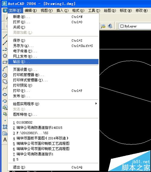 4、好了,現(xiàn)在我們要把這張圖轉(zhuǎn)化成BMP圖片。請(qǐng)點(diǎn)擊下拉菜單并找到“輸出”。