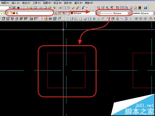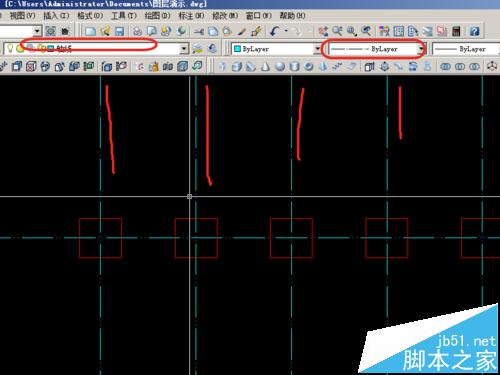 6、在繪制軸線時,我們需要切換到軸線圖層,這樣繪制出來的軸線,就是設置的藍色點劃線了。