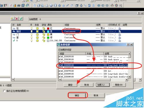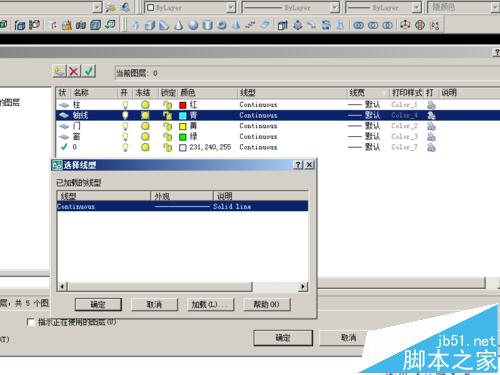 5、如圖,軸線我們選擇為點劃線,其余選擇為實現。當然顏色的設置也可以多樣化。
