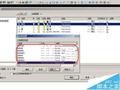 4、這時在選擇線型的對話框中就出現了所有線型。這樣,我們就可以選擇應用了。