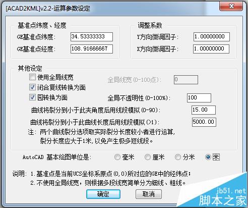 ②輸入基準點經緯度→選擇基本繪圖單位:米→確定→選擇保存路徑并輸入文件名