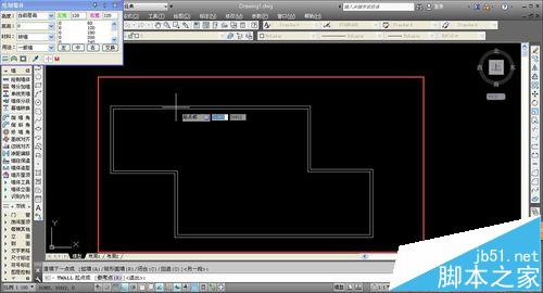 3、選定工具后,在繪圖頁面的左上角會出現墻體的設置頁面,可以對墻體的寬度等具體屬性進行設置,設置完成后,將鼠標移動到繪圖處,即可開始進行墻體的繪制。