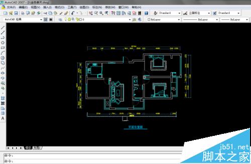 1、首先打開cad,我這里有一套戶型的原始結構圖,以此為例,下面來說一下戶型平面布置的思考點