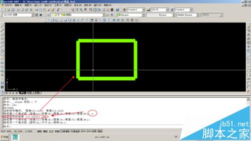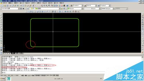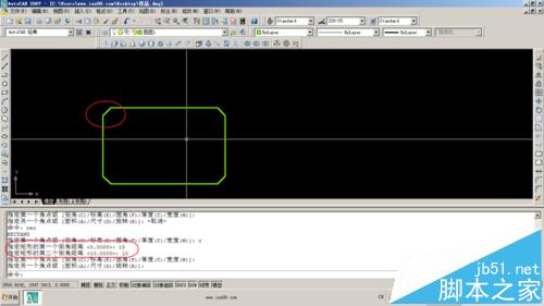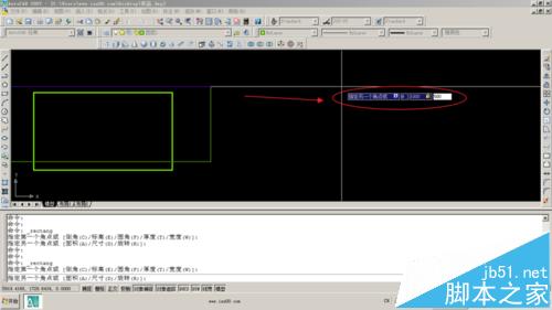 2、在很多時候,我們需要畫一個定尺的矩形。如圖,我們可以借助于相對偏移來確定。使用@1000,500確定于相對上一點的尺寸。