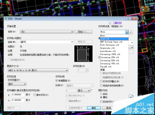 3、打印頁面的右上角打印樣式表NONE,該為ACAD。