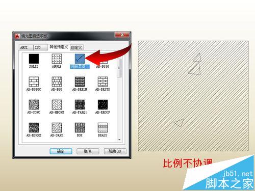 5、回CAD,調(diào)用填充命令,使用自定義的圖案以檢查其填充效果(如果未能找到剛剛定義的圖案可以重新啟動CAD)。從下圖中可以看到兩種圖形顯示比例不協(xié)調(diào),斜線較密,需要進(jìn)一步調(diào)整其比例。