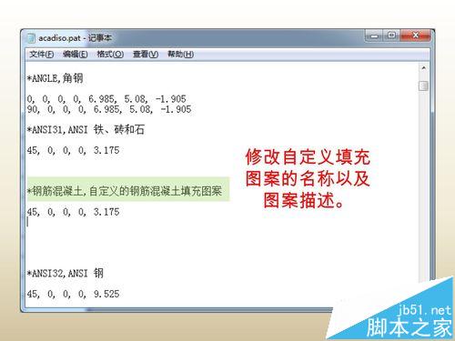 注意事項:“acadiso.pat”與“acad.pat”分別對應(yīng)公制和英制,應(yīng)根據(jù)繪圖環(huán)境選擇修改(如果不確定可對兩者都進(jìn)行修改)。