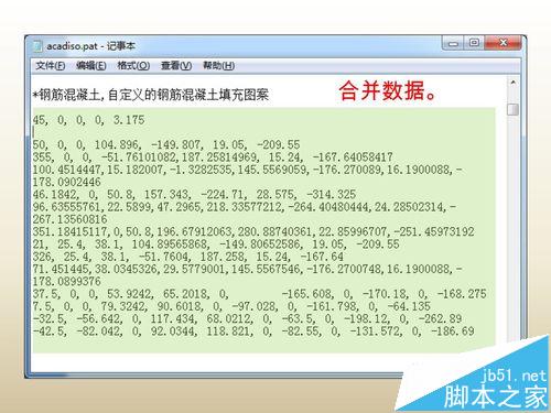 4、除“*AR-CONC,隨機的點和石頭圖案”一行文字、合并數(shù)據(jù),然后保存記事本(可暫不關(guān)閉記事本)。