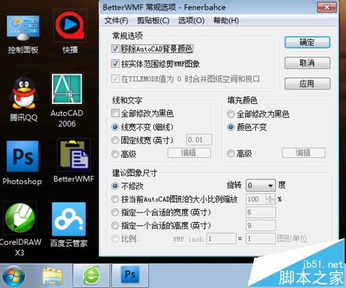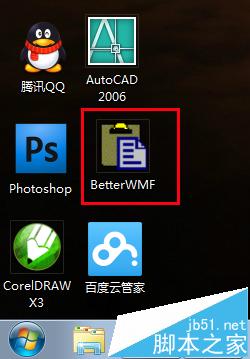 1、我們在CAD中完成自己設計的圖形后,保持該設計圖形在cad中的打開狀態,然后在桌面雙擊已經安裝好的BetterWMF軟件圖標啟動BetterWMF,如下圖所示: