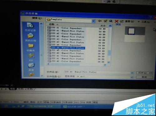 5、在對話框下拉菜單中找到需要打開的圖紙,如打開“ISO A4 -Named Plot Styles”,然后點擊打開它。