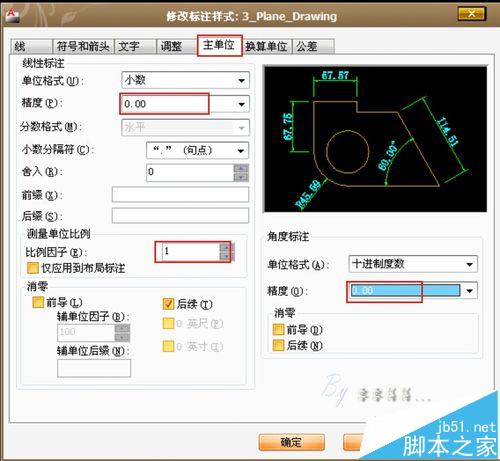 7、進入“主單位”設置:這里有2個精度,一個是線性尺寸,一個是角度尺寸。對于精度較高的制圖,一般要選擇精確到小數點后兩位。參下圖設置。