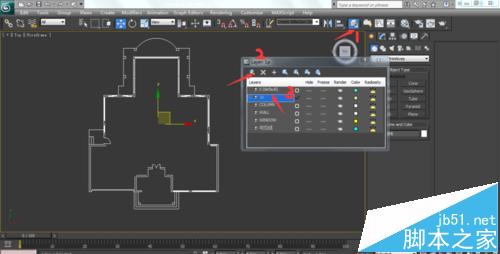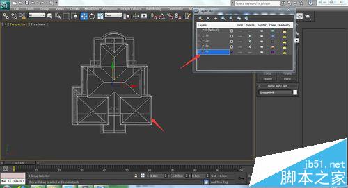 7、點擊圖層按鈕,新建一圖層命名為1p(底平面),這里的命名最好是自己容易區分容易記住有見名知曉效果的名字。選擇場景中的組,將底平面點擊加號加進新建圖層,對于前面沒有小加號的圖層,點擊紅色小叉刪除掉,注意0圖層刪不掉,這樣不易混淆,干凈利落。