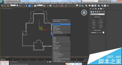 8、凍結戶型,這里我們使用圖層很方便,直接點擊新建圖層后的freeze就可以凍結了,當然也可以選擇場景中的組,直接右擊彈出凍結選擇按鈕凍結。這里我們用了圖層最好在圖層里凍結,這樣更規范。凍結后的組可以看到呈灰色狀態,并且不能移動。