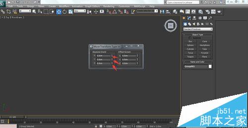 6、打組之后才能在max中坐標歸零,坐標歸零的好處是很容易找到物體,對鼠標的縮放沒有困難。操作是右擊移動工具,彈出移動坐標參數面板,分別右擊左邊欄的世界坐標X,Y,Z的下面一個小三角形選項,將三項參數全部歸零。這時候可以看到場景中戶型不見了,這時候不要著急,關掉移動參數面板,單擊一下場景中空白處,按快捷鍵Z鍵,戶型就最大化顯示了。