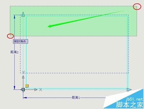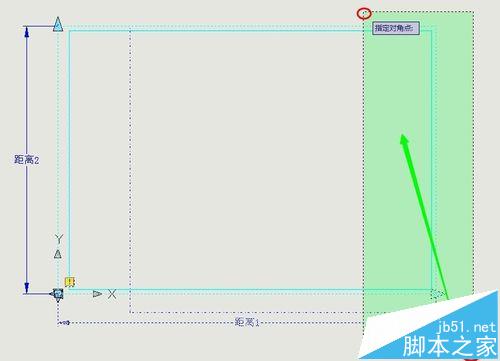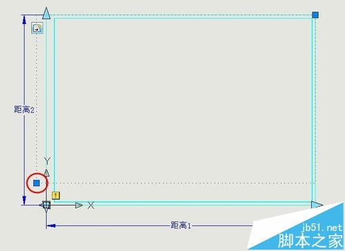 5、垂直方向一樣的操作方法,注意塊編輯時(shí),距離和拉伸動(dòng)作取點(diǎn)的位置關(guān)系——垂直。選擇垂直【距離2】時(shí),選擇的點(diǎn)和對象都是于【距離2】垂直的。