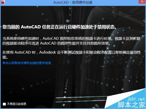 autocad禁用加速時,會彈出以下提示,如下圖: