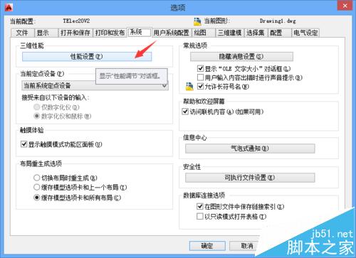 3、彈出【選項】對話框,選擇【系統】按鈕,如下圖:
