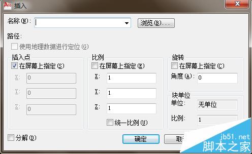4、保存好之后,需要繪制圖形時,點擊插入里的塊命令,將所保存的塊導入圖中