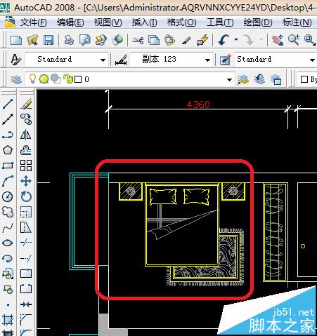 cad怎么畫房間平面圖,房間要擺哪些物體來表現出來,一張床要放多大才合適,衣柜要放在哪個位置。如下圖所顯示。
