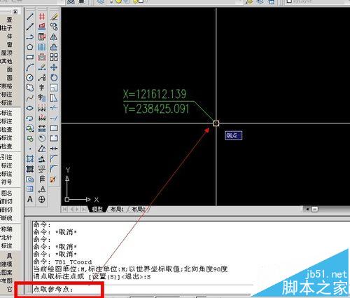 4、輸入這個點正確的坐標值, 先輸Y,再輸X,回車