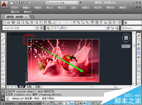 5、這時候要求指定第一個角點,然后拖動鼠標,指定對焦點,確定之后,點擊一下鼠標左鍵,確定剪裁。
