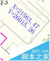 由于如果位置偏差很遠是,CAD畫點很難查找得到,所以用畫線(‘LINE’命令)的方式來定位正確的坐標點。要注意的是,圖上所標X、Y需要顛倒過來寫,也就是先寫Y坐標值,再寫X坐標值,如第二個圖所示。