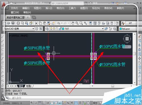 1、這里是個(gè)例子,這里準(zhǔn)備將“雨水管”這個(gè)圖層的所有對(duì)象一次性選中。