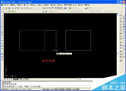 5、拉伸點——框選需要拉伸的點與相交于此點的兩條線——按空格——選擇基點——選擇另一基點