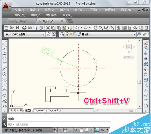 2、然后按Ctrl+Shift+V進行復制,此時可以看到圖形已經成為一個塊了。