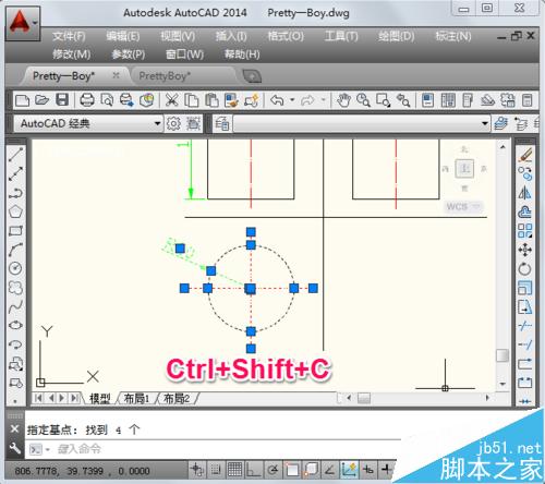 1、首先在cad中選中要復制的圖形,按Ctrl+Shift+C進行復制。