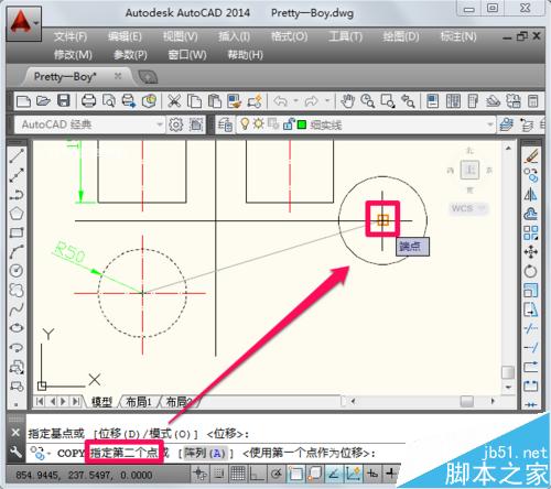 4、根據命令欄中的提示,點擊第二點進行復制。