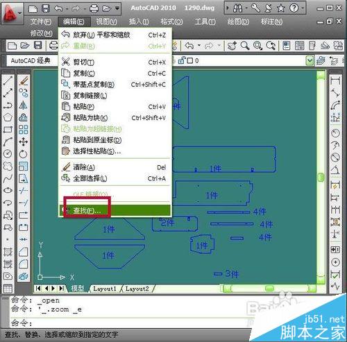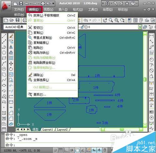2、需要查找替換文字的圖紙打開以后,鼠標點擊cad窗口菜單欄上面的編輯按鈕
