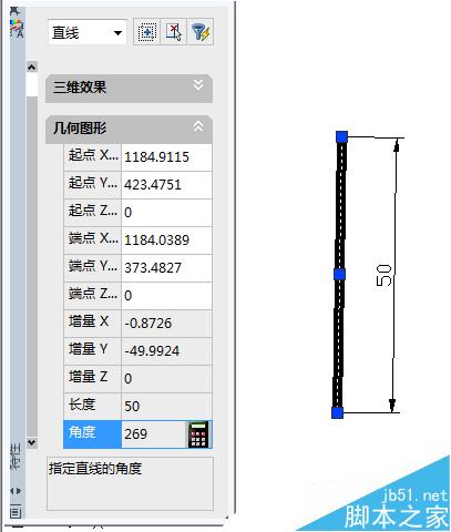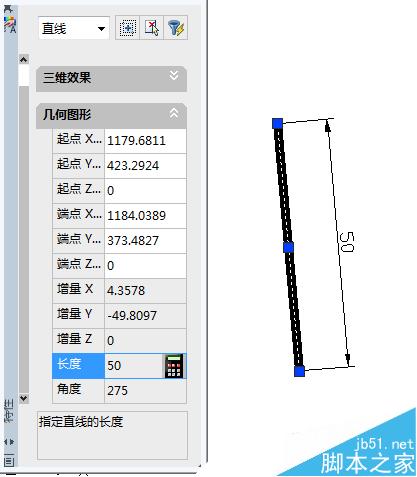 我以角度為275°,長度為50的直線為例,向大家做一個示范!