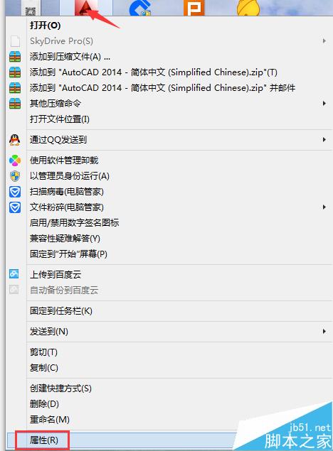 2、在桌面上找到CAD圖標,點擊鼠標右鍵,在彈出的快捷菜單中選擇【屬性】。