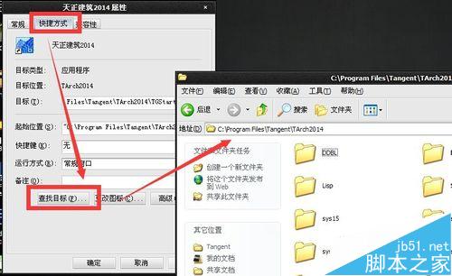 在天正的桌面圖標(biāo)上點(diǎn)鼠標(biāo)右鍵,選擇“屬性”,在彈出的對(duì)話(huà)框中選擇“快捷方式”選項(xiàng)卡,點(diǎn)左下角的“查找目標(biāo)”按鈕即可找到安裝目錄。