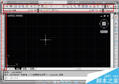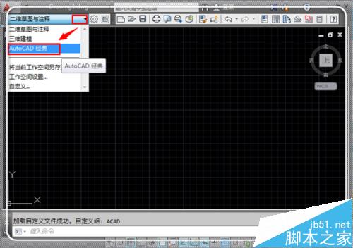 7、別急,點擊“二位草圖與注釋”后面的倒三角形,找到“autocad經典”,點擊“autocad經典”。