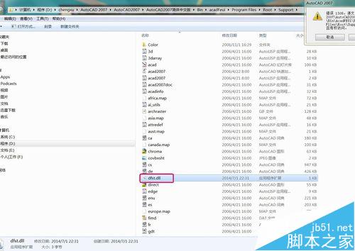 3、右鍵單擊dfst.dll--剪切,并按錯誤提示打開CAD安裝目錄的Support文檔。
