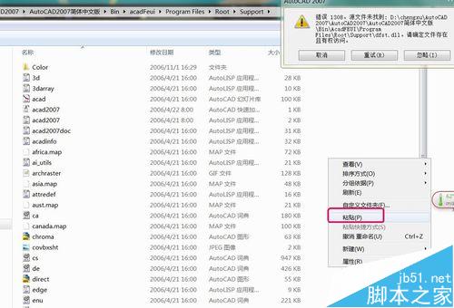 4、在空白處右鍵單擊‘粘貼’,可以發現文檔里就有了dfst.dll文件了,再次打開CAD就沒有錯誤1308的提醒了。寫的很詳細,希望對大家有幫助。