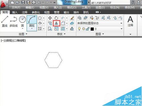 選中剛畫好的六邊形,單擊鏡像工具,這時六邊形變成虛線,右擊最底下的邊的左端點,拖動鼠標把新的六邊形和原來的拼接起來,對準時右擊,選擇確認。