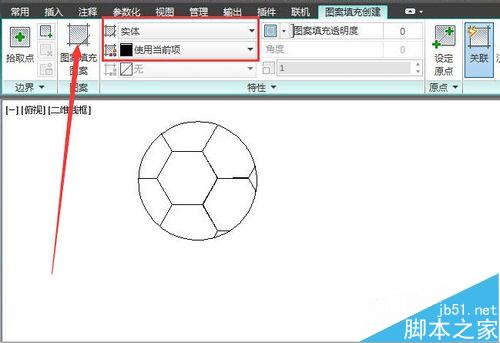 足球只需要黑白兩色,白色不用上了,只要設置黑色。單擊常用工具欄圖案填充工具,選擇實體,黑色,使用當前項。