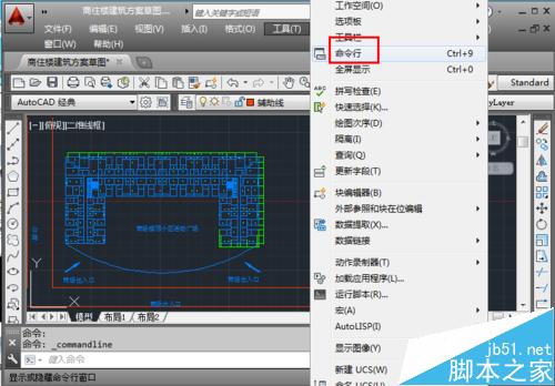 2、在彈出來的看工具欄目中,點擊“命令行”。