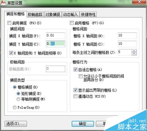 3、將啟用捕捉選項不選擇,最好將下面間距調小,確定就可以了.如圖