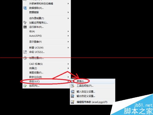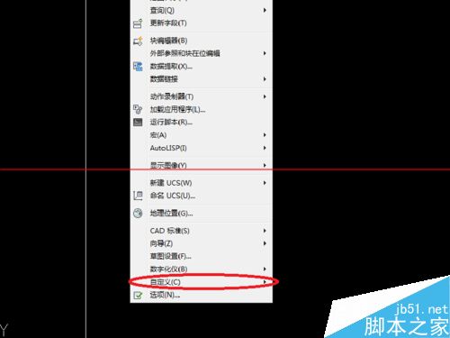 3、單擊“自定義”選項(xiàng)后會(huì)彈出下拉菜單,在菜單欄中的第一行有個(gè)“界面”選項(xiàng),點(diǎn)擊“界面”