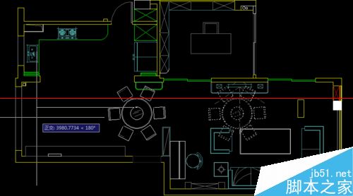 2、鍵盤輸入M(移動(dòng)命令),選擇餐桌和椅子。往右側(cè)移動(dòng)。
