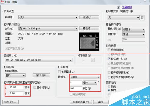 1、命令行輸入plot或print或按Ctrl+P打開對話框進行打印設置。