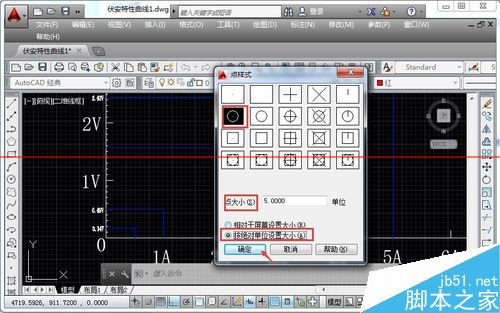 4、彈出點(diǎn)的樣式對話框,在這個(gè)對話框中,可以設(shè)置點(diǎn)的形狀及大小,我在此選圓形,突顯一下,要稍微大一些的