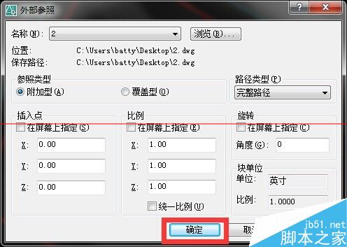 4、如果是同一坐標(biāo)系下的圖形:在插入點(diǎn)、比例尺都不勾選,如果不是,勾選插入點(diǎn)等。
