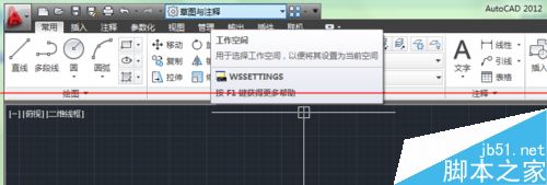 2、然后,鼠標“單擊”左上角的工作空間按鈕,來設置工作空間。注:有些版本會調節成在功能區下方 有的在右下角 。